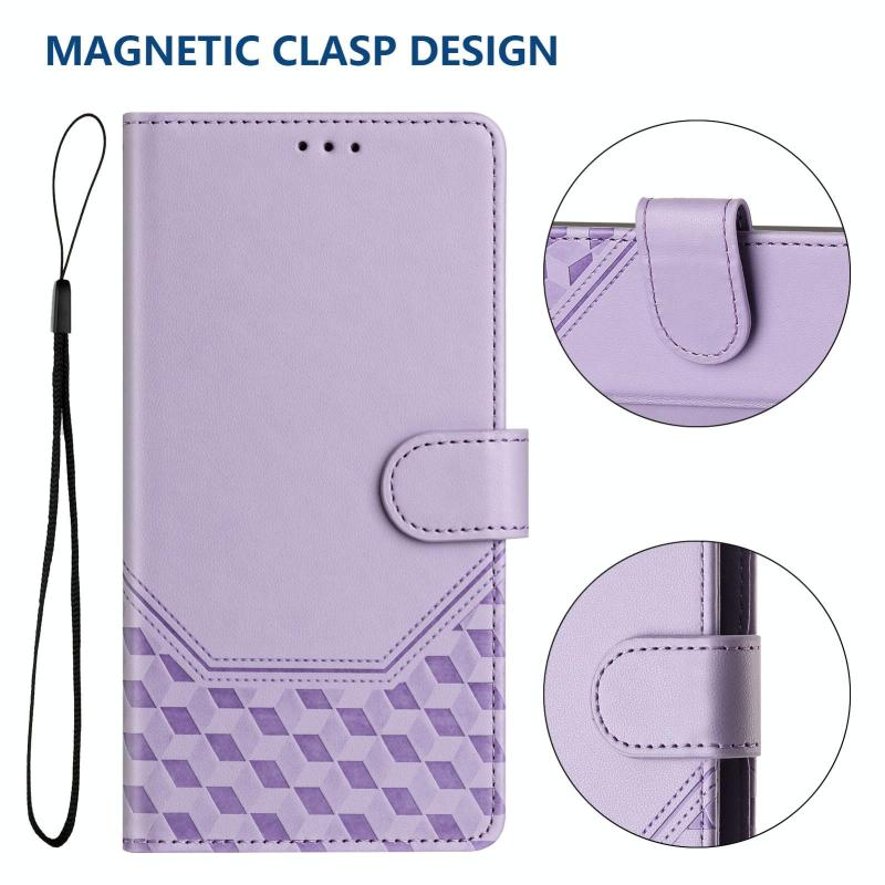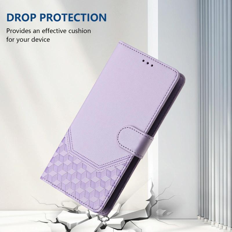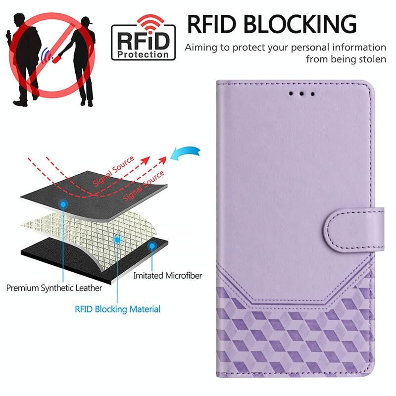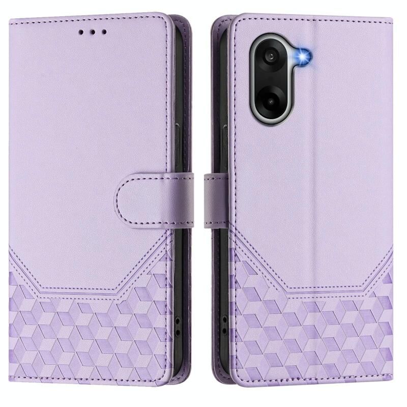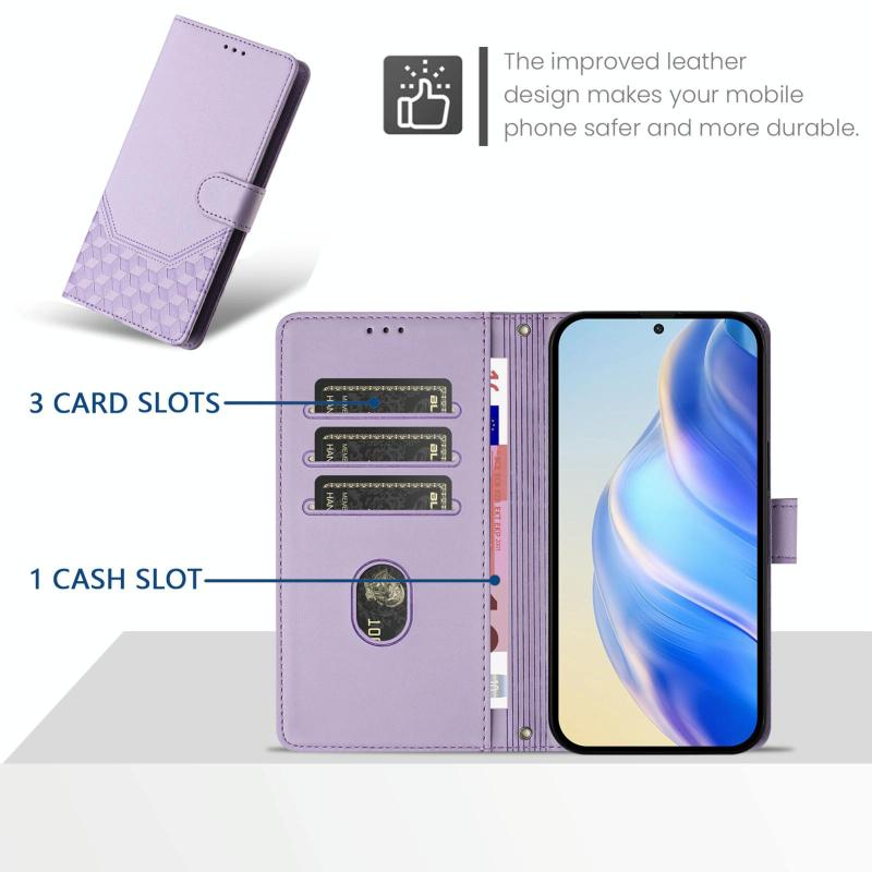 Θήκη δερμάτινη για OnePlus Ace 5 Racing με ανάγλυφο κηρήθρας & RFID (Ανοιχτό Μωβ)