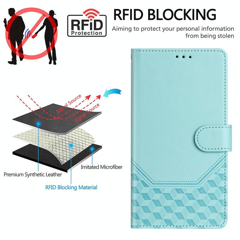 Θήκη δερμάτινη για OnePlus Ace 5 Racing με ανάγλυφο κηρήθρας & RFID (Πράσινο Μέντα)