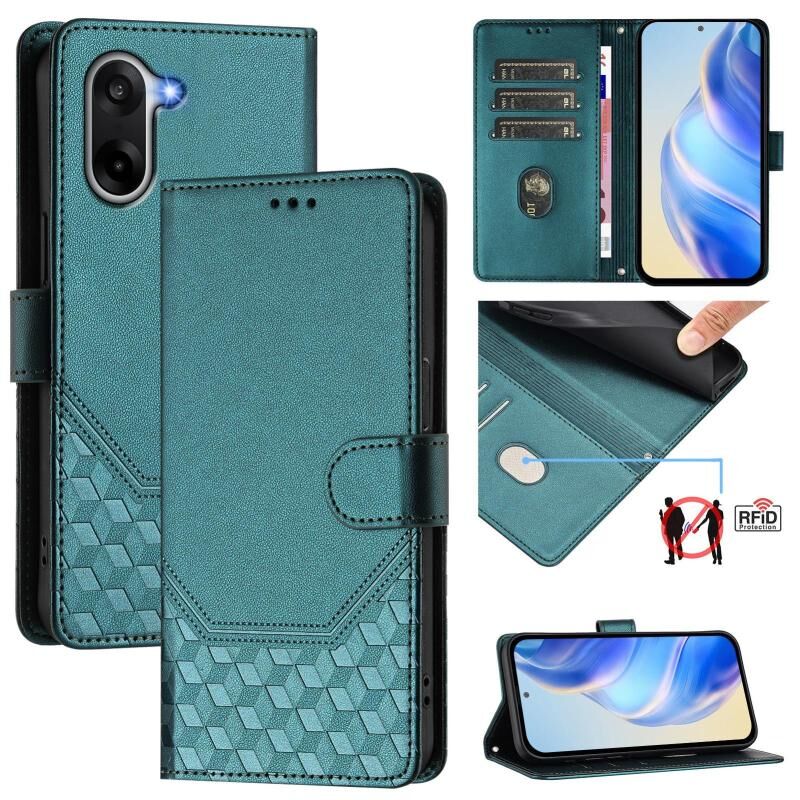 Θήκη δερμάτινη για OnePlus Ace 5 Racing με ανάγλυφο κηρήθρας & RFID (Πράσινο Παγωνιού)