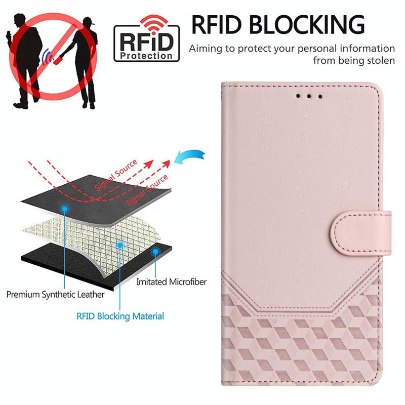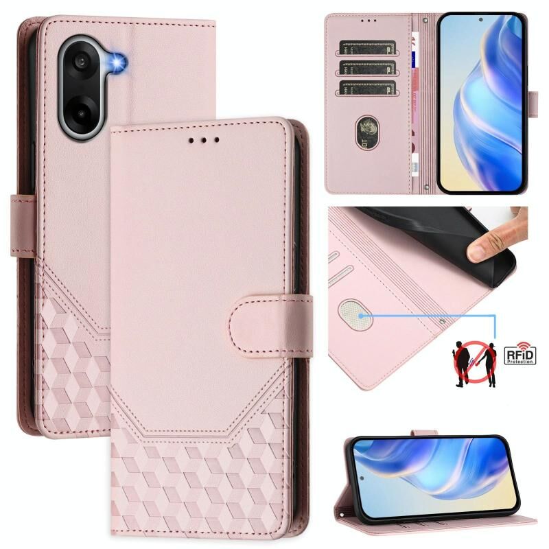Θήκη δερμάτινη για OnePlus Ace 5 Racing με ανάγλυφο κηρήθρας & RFID (Ροζ)