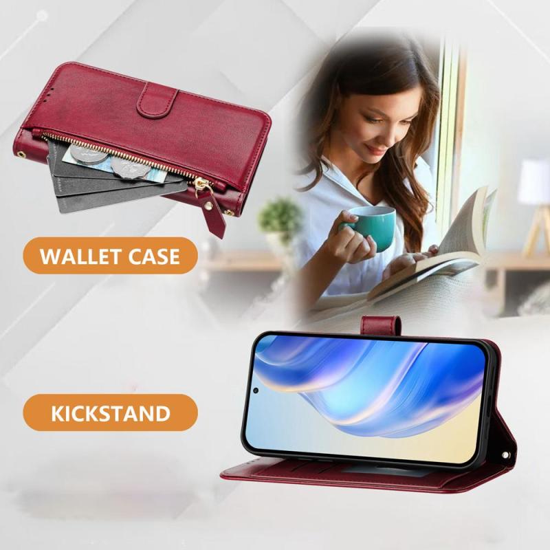 Για OnePlus Ace 5 Racing Δερμάτινη Θήκη Πορτοφολιού με Κάρτες & Φερμουάρ (Σκούρο Κόκκινο)