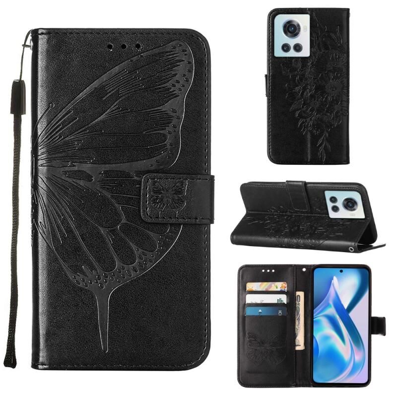 Θήκη τηλεφώνου από δέρμα με ανάγλυφο σχέδιο πεταλούδας για OnePlus Ace 5G (Μωβ)