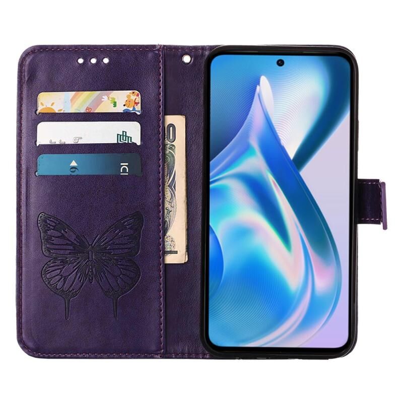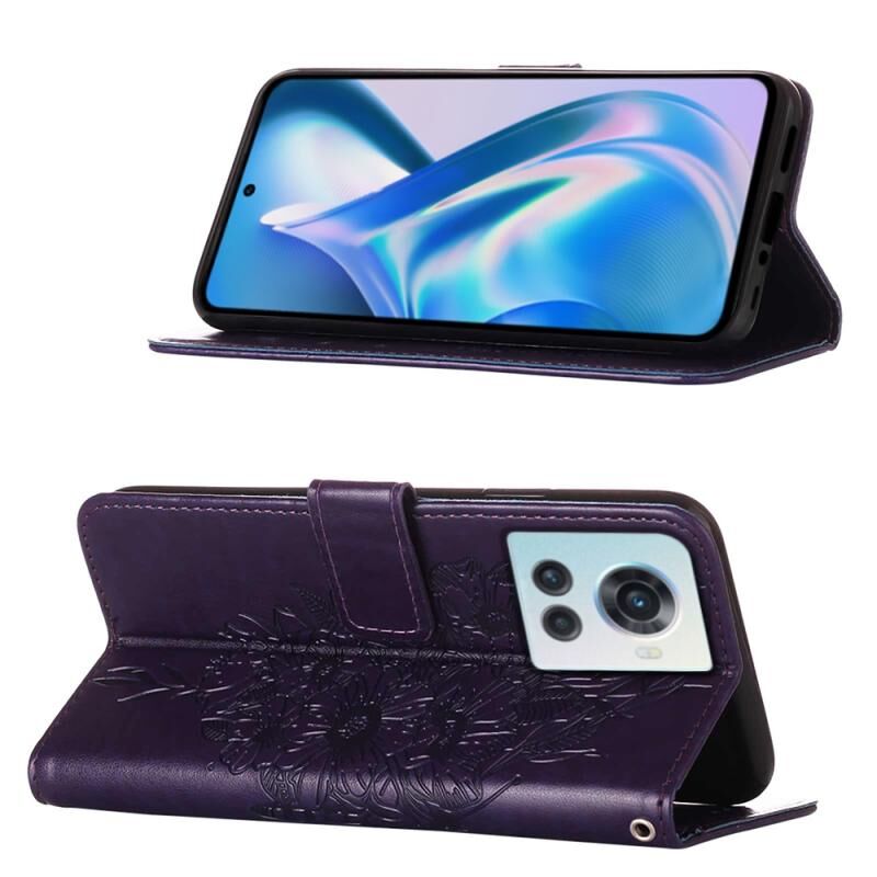 Θήκη τηλεφώνου από δέρμα με ανάγλυφο σχέδιο πεταλούδας για OnePlus Ace 5G (Μωβ)