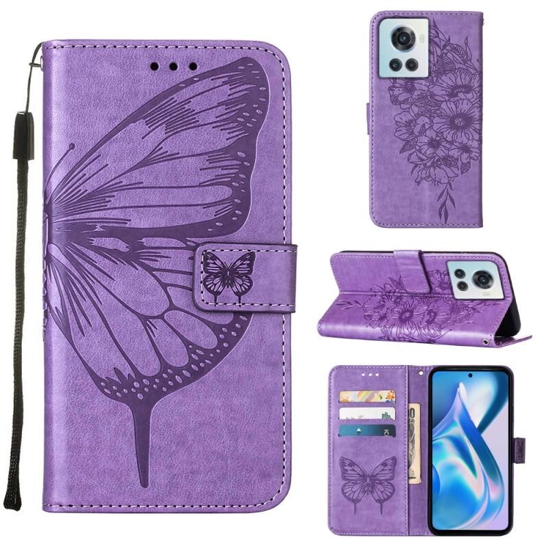 Θήκη τηλεφώνου από δέρμα με ανάγλυφο σχέδιο πεταλούδας για OnePlus Ace 5G (Μωβ)