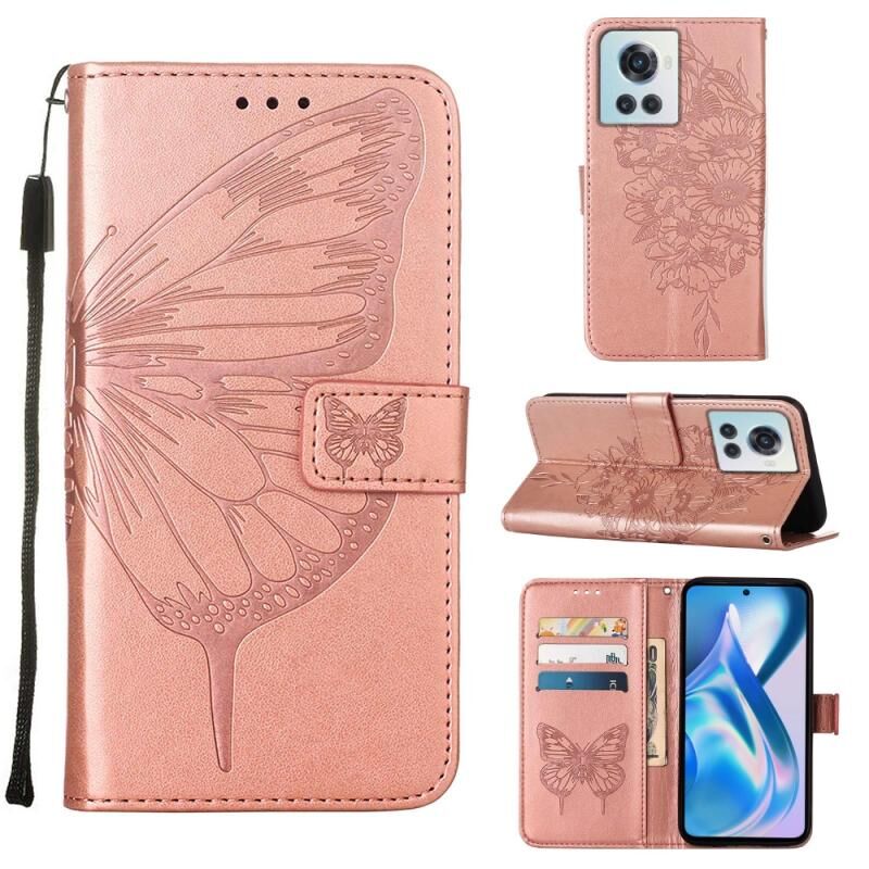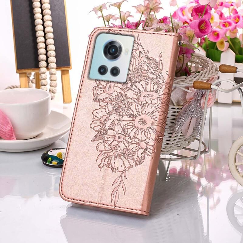 Θήκη τηλεφώνου από δέρμα με ανάγλυφο σχέδιο πεταλούδας για OnePlus Ace 5G (Μωβ)