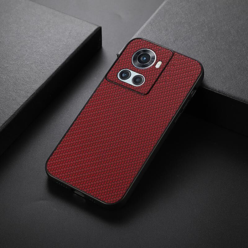 Για OnePlus Ace Ακριβής τρύπα ανθρακονήματα υφή PU τηλέφωνο υπόθεση (κόκκινο)