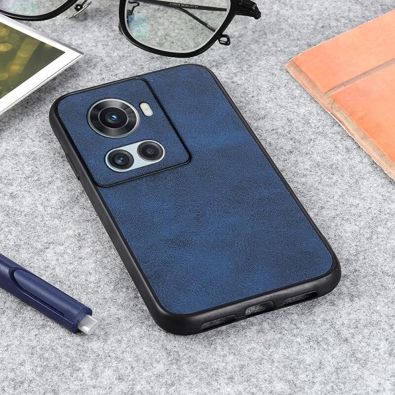 Για OnePlus Ace Ακριβής τρύπα δύο χρωμάτων μοσχάρι Υφή PU υπόθεση τηλεφώνου (μπλε)