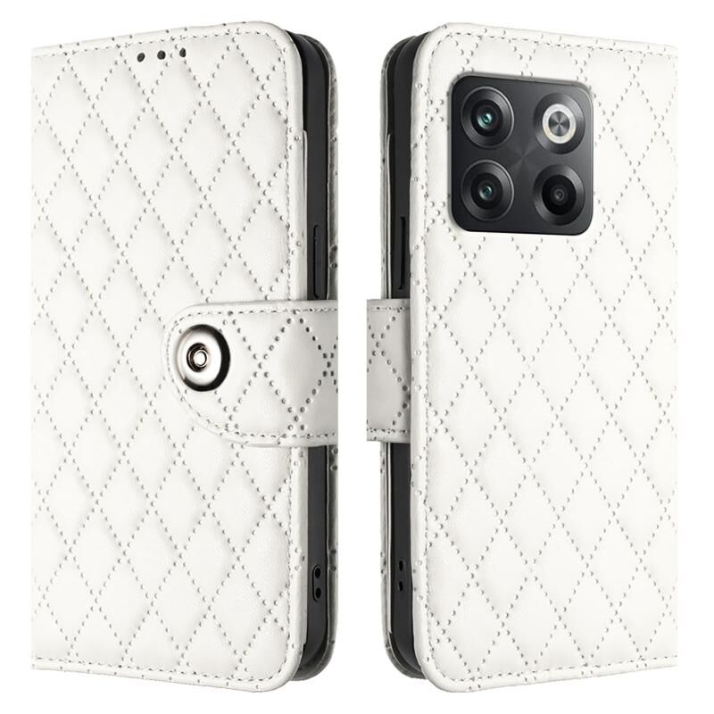 Για OnePlus Ace Pro / 10T Rhombic υφή Flip υπόθεση τηλεφώνου δέρμα με κορδόνι (λευκό)