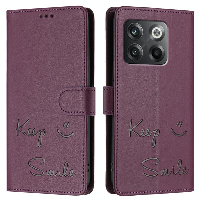 Για OnePlus Ace Pro / 10T χαμόγελο ανάγλυφο RFID δερμάτινη θήκη τηλεφώνου (Violet)