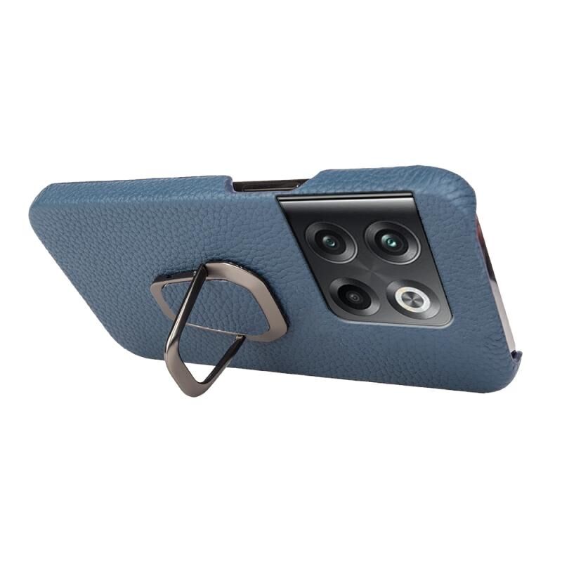 Θήκη τηλεφώνου από γνήσιο δέρμα με υφή λύτσι για OnePlus Ace Pro / 11T με δακτύλιο στήριξης (Μαύρο)