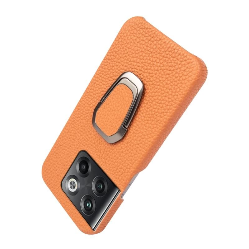 Θήκη τηλεφώνου από γνήσιο δέρμα με υφή λύτσι για OnePlus Ace Pro / 11T με δακτύλιο στήριξης (Μαύρο)