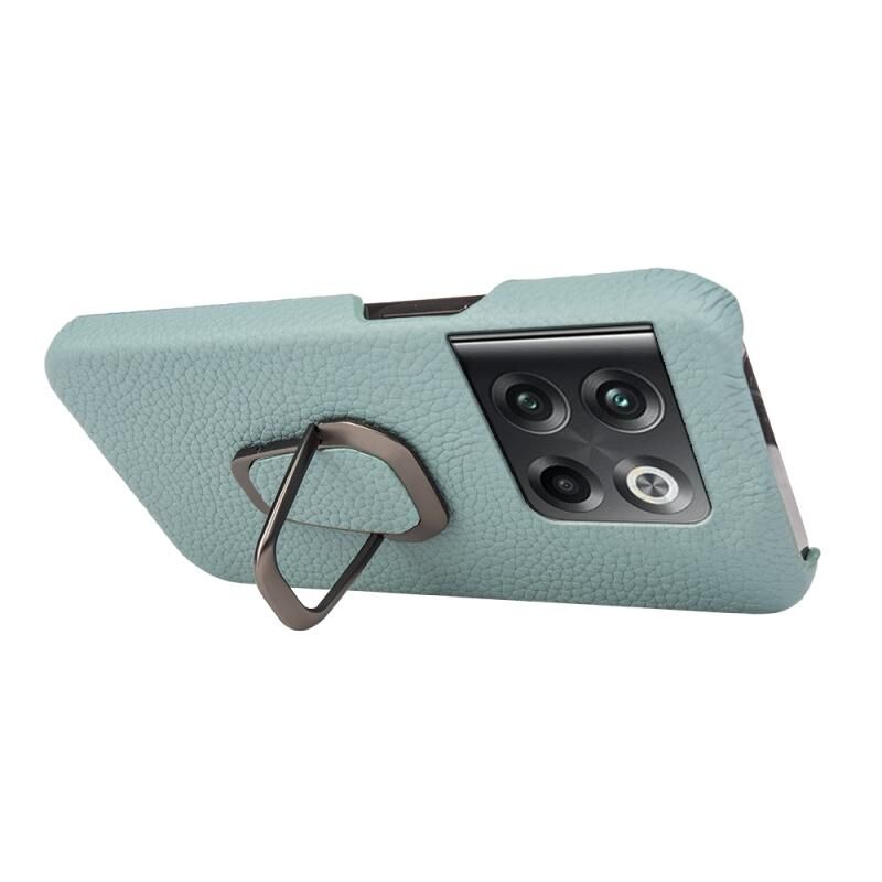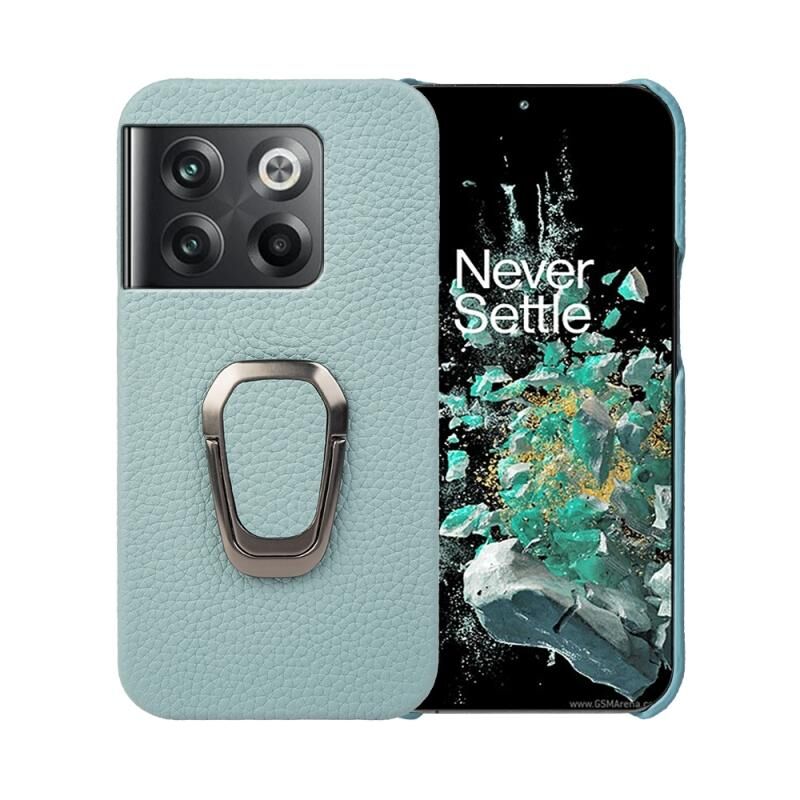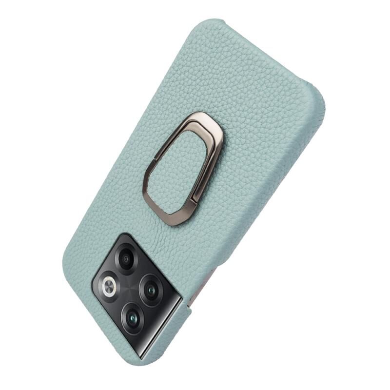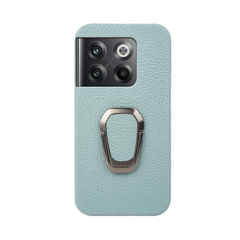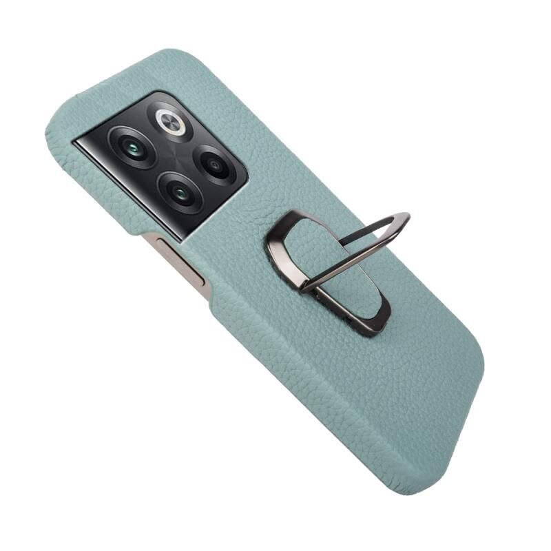 Θήκη τηλεφώνου από γνήσιο δέρμα με υφή λitchi και δακτύλιο στήριξης για OnePlus Ace Pro / 11T (Κυανό)