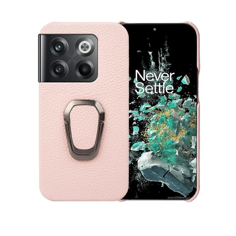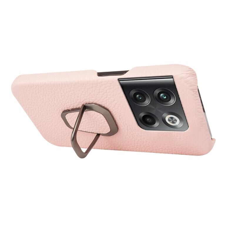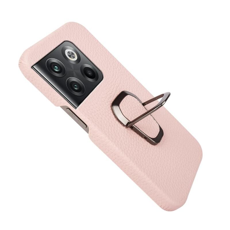 Θήκη τηλεφώνου από γνήσιο δέρμα με υφή λύτσι για OnePlus Ace Pro / 11T με δακτύλιο στήριξης (Μαύρο)