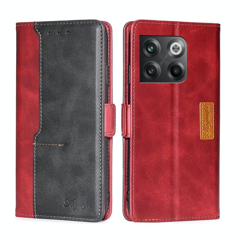 Για OnePlus Ace Pro 5G αντίθεση χρώμα πλευρά πόρπη δερμάτινη θήκη τηλεφώνου (κόκκινο + μαύρο)