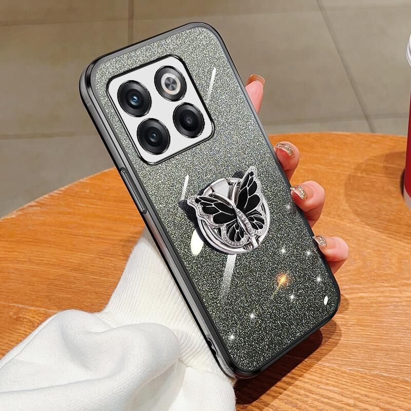 Για OnePlus Ace Pro Επιμεταλλωμένο διαβάθμιση Glitter πεταλούδα κάτοχος TPU τηλέφωνο υπόθεση (μαύρο)