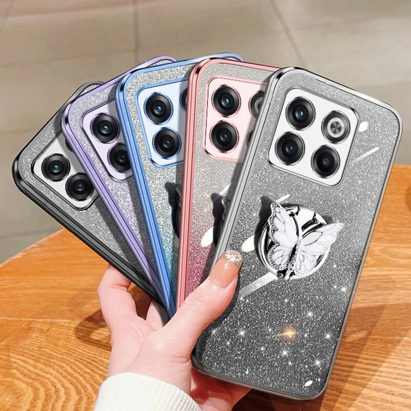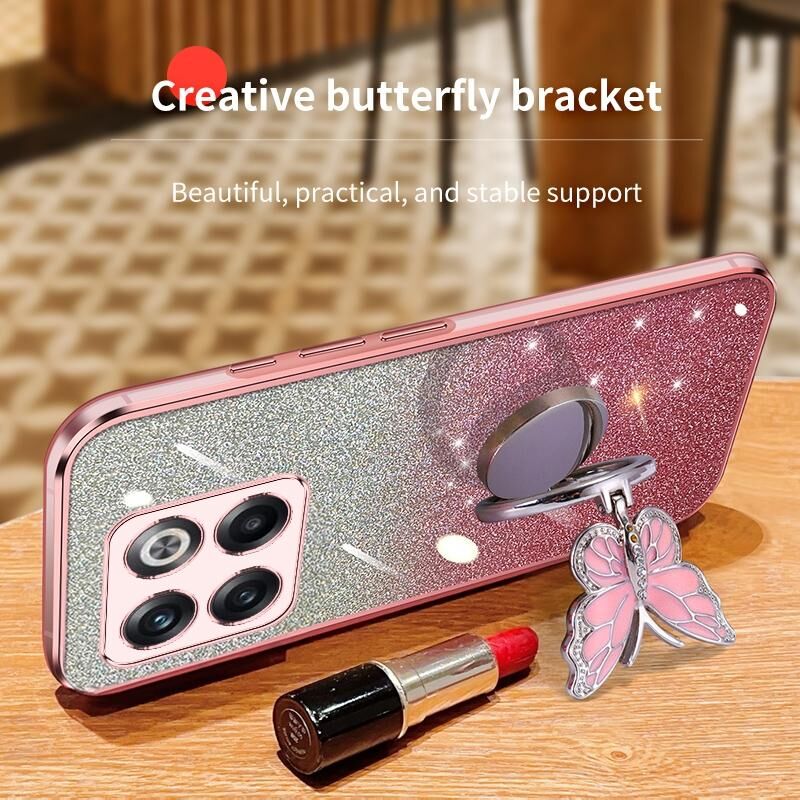 Για OnePlus Ace Pro Επιμεταλλωμένο διαβάθμιση Glitter πεταλούδα κάτοχος TPU τηλέφωνο υπόθεση (Sierra Blue)