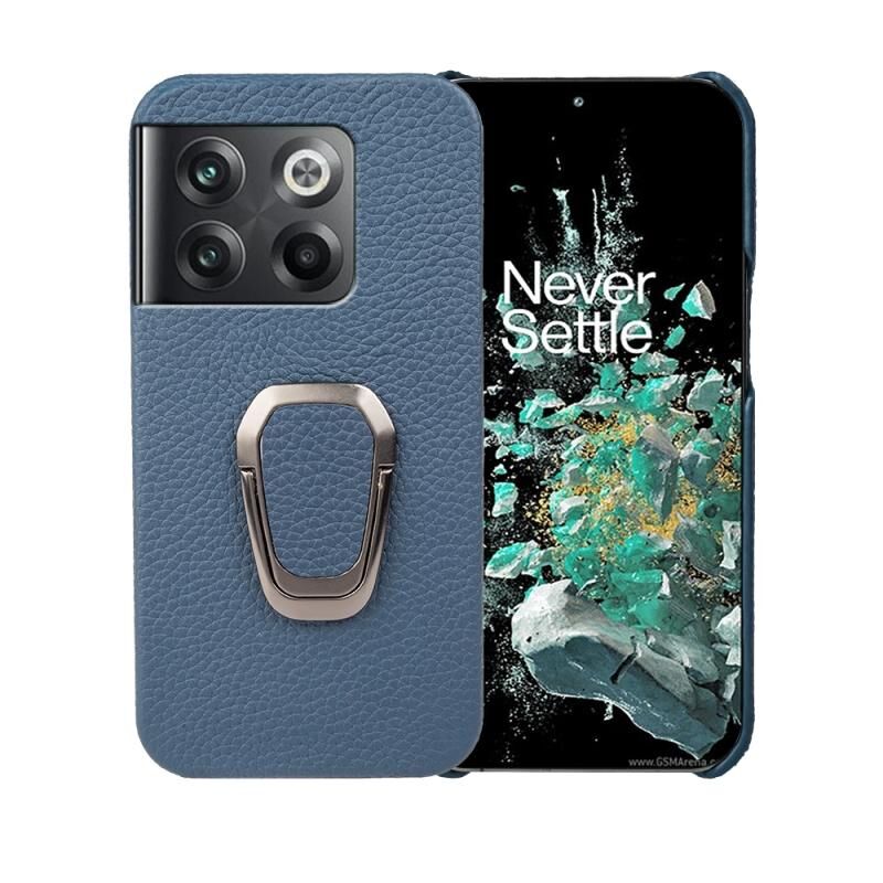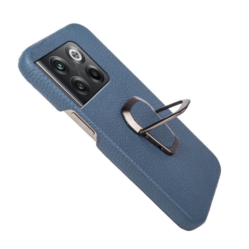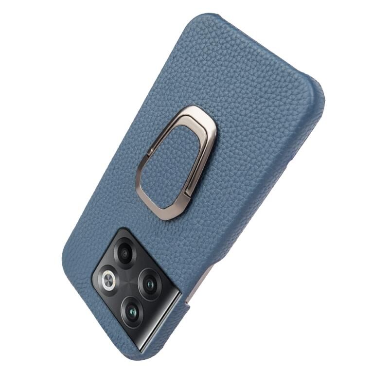 Θήκη τηλεφώνου από γνήσιο δέρμα με υφή λύτσι για OnePlus Ace Pro με δακτύλιο στήριξης (Μαύρο)