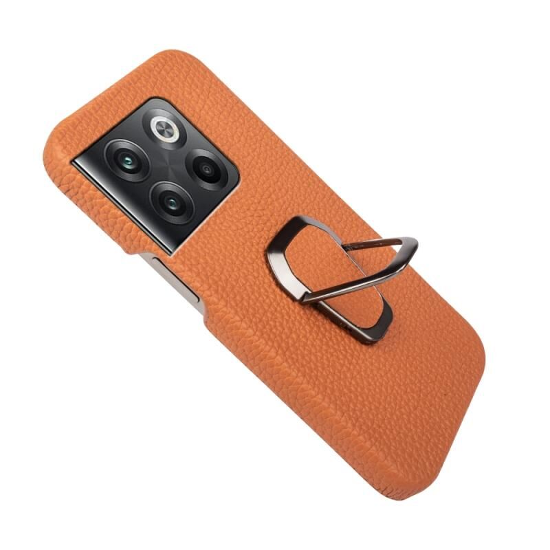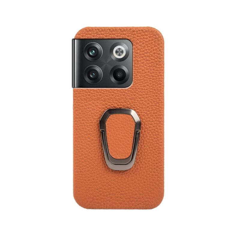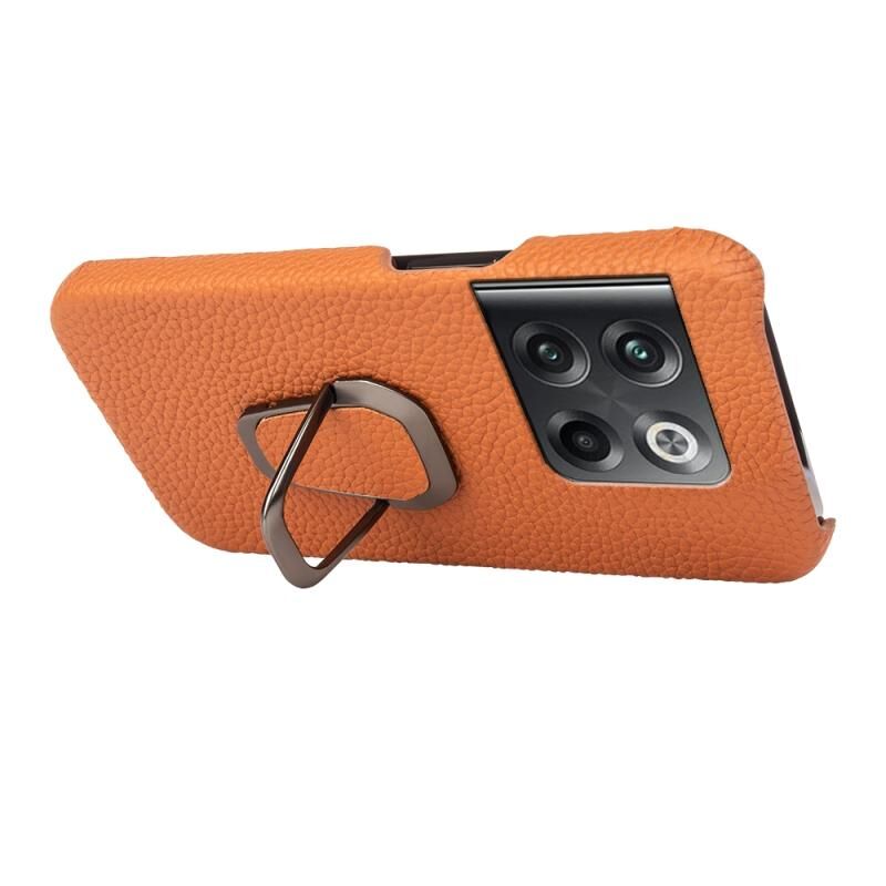 Θήκη τηλεφώνου από γνήσιο δέρμα με υφή λύτσι για OnePlus Ace Pro με δακτύλιο στήριξης (Μαύρο)