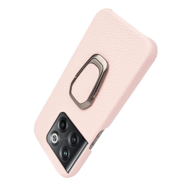 Θήκη τηλεφώνου από γνήσιο δέρμα με υφή λύτσι για OnePlus Ace Pro με δακτύλιο στήριξης (Μαύρο)
