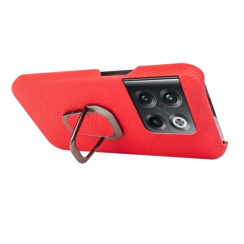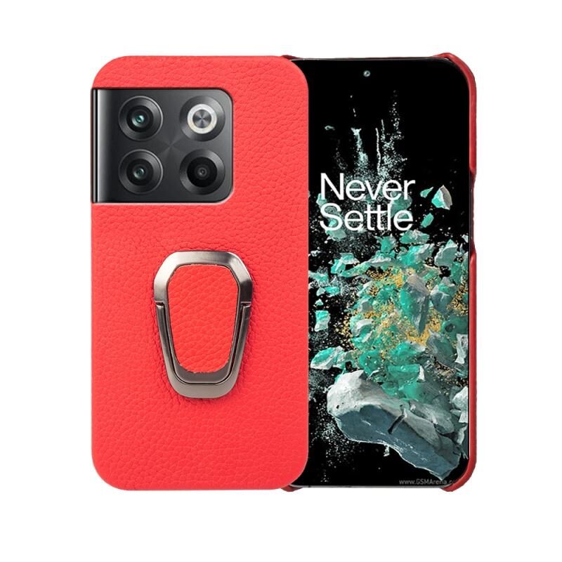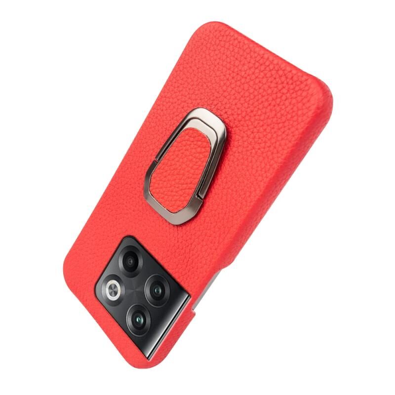 Θήκη τηλεφώνου από γνήσιο δέρμα με υφή λύτσι για OnePlus Ace Pro με δακτύλιο στήριξης (Μαύρο)