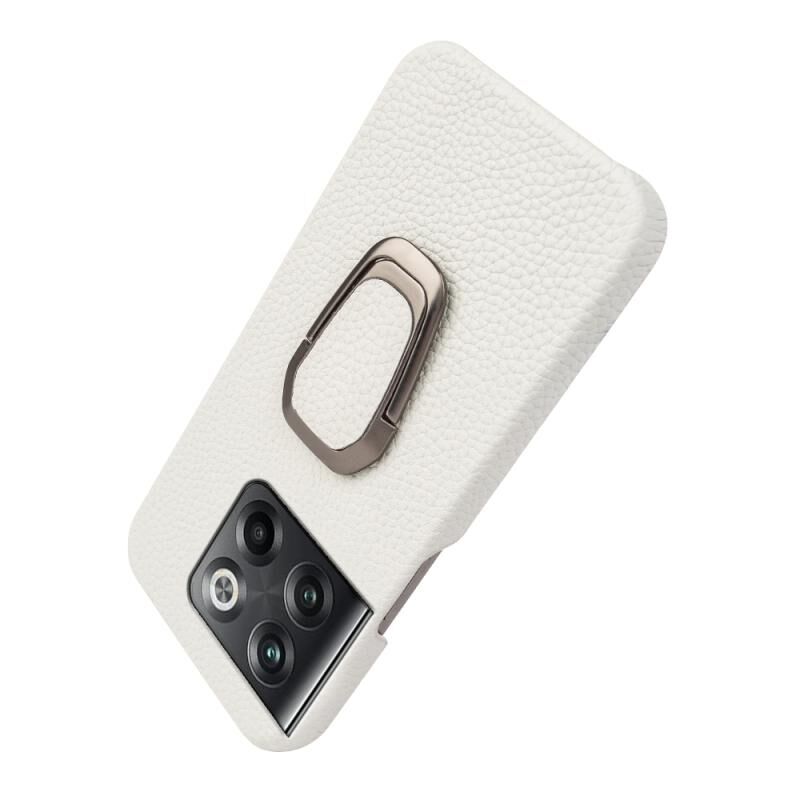 Θήκη τηλεφώνου από γνήσιο δέρμα με υφή λύτσι για OnePlus Ace Pro με δακτύλιο στήριξης (Μαύρο)