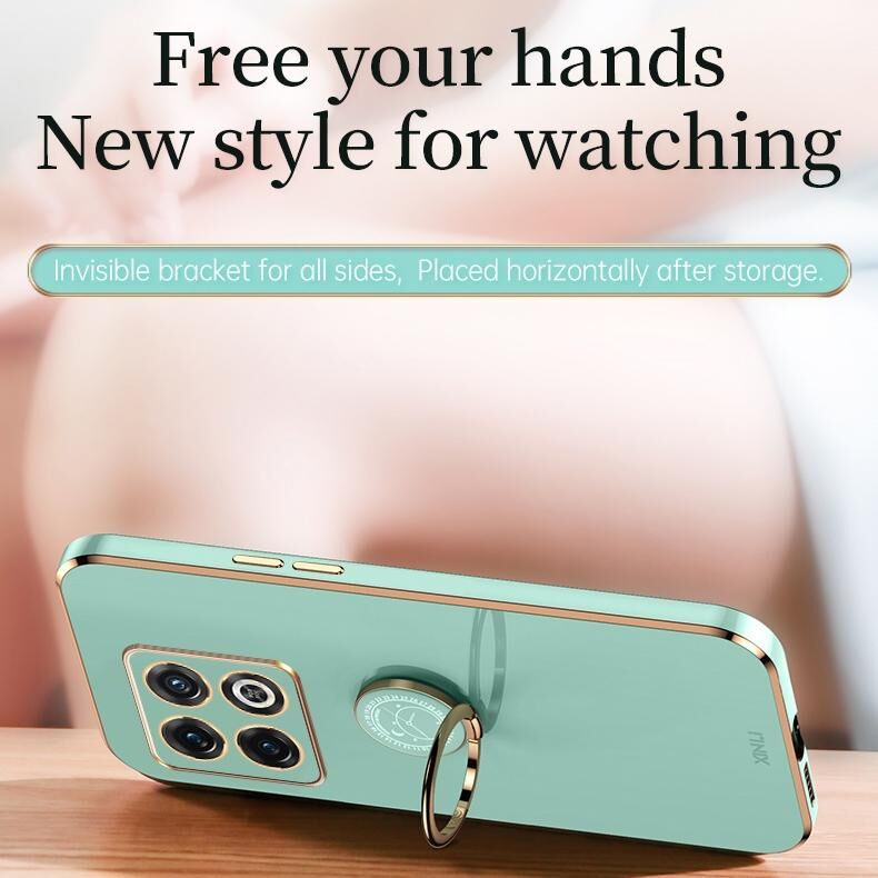 Θήκη τηλεφώνου TPU με ηλεκτροεπιμετάλλωση 6D και ευθεία άκρη για OnePlus Ace Pro XINLI με δακτύλιο στήριξης (Μέντας Πράσινο)