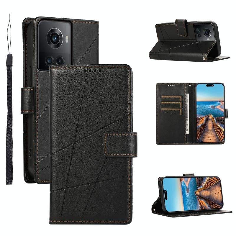 Θήκη τηλεφώνου OnePlus Ace PU με γνήσια υφή δέρματος και ανάγλυφο σχέδιο (Μπλε)