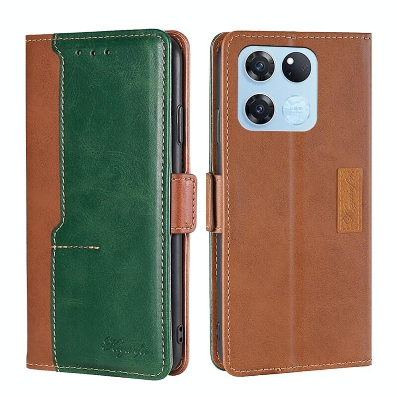 Για OnePlus Ace Racing αντίθεση χρώμα πλευρά πόρπη δερμάτινη θήκη τηλεφώνου υπόθεση (ανοιχτό καφέ + πράσινο)