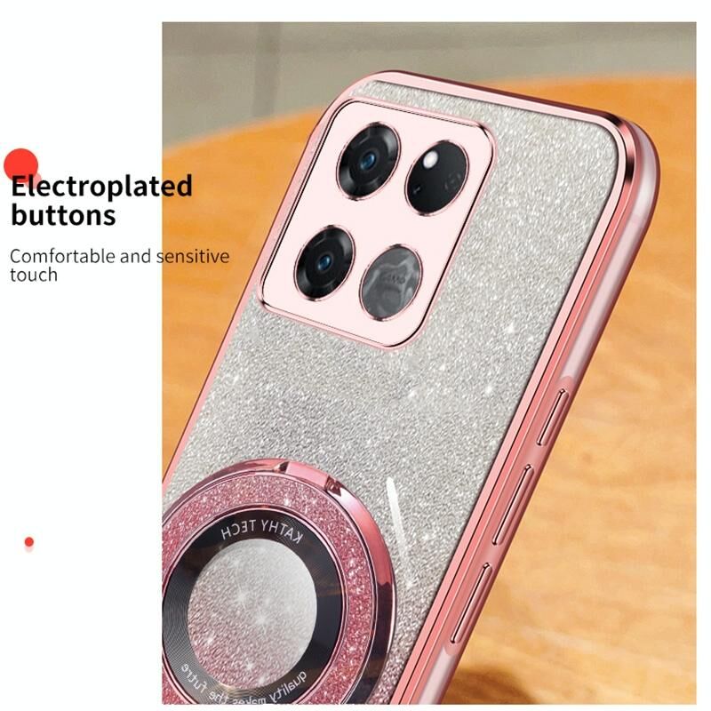 Για OnePlus Ace Racing επιμεταλλωμένο διαβάθμιση Glitter στρογγυλή κάτοχος TPU τηλέφωνο υπόθεση (μαύρο)