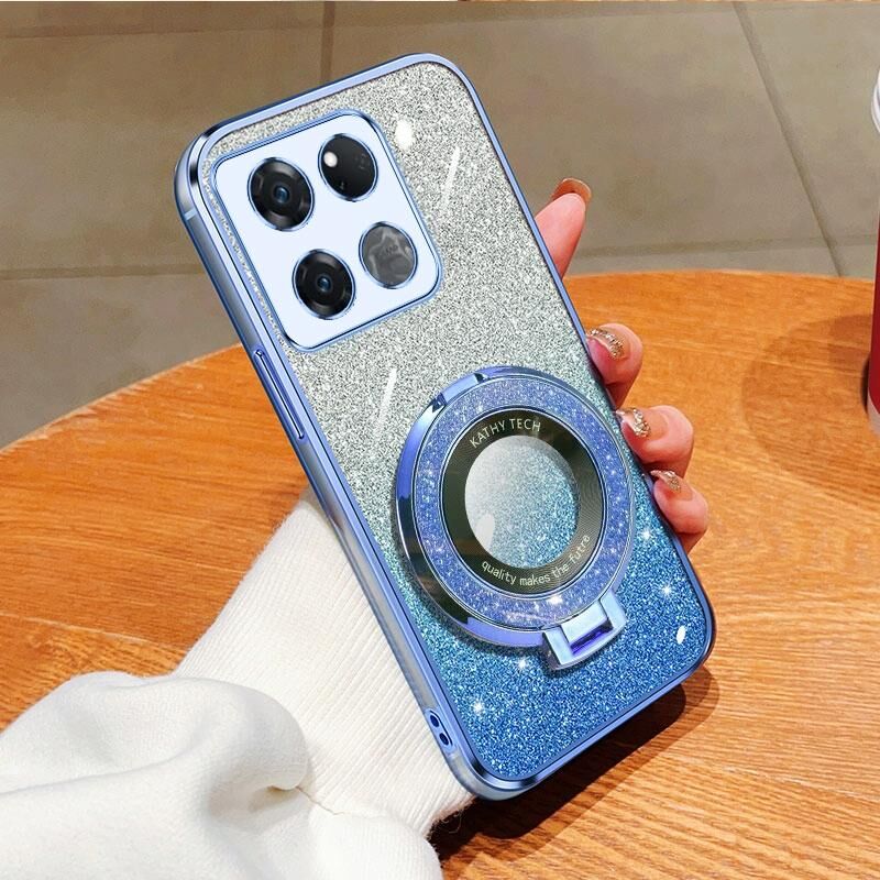 Για OnePlus Ace Racing επιμεταλλωμένο διαβάθμιση Glitter στρογγυλό κάτοχος TPU τηλέφωνο υπόθεση (Sierra Blue)