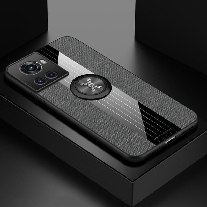 Για OnePlus Ace XINLI ραφή ύφασμα Textue TPU υπόθεση τηλεφώνου με κάτοχο δαχτυλίδι (γκρι) (Γκρι)