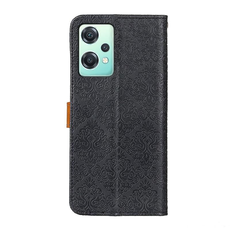 Για OnePlus CE 2 Lite 5G Ευρωπαϊκή Floral ανάγλυφο ανάγλυφο Flip δέρμα υπόθεση τηλεφώνου (μαύρο)