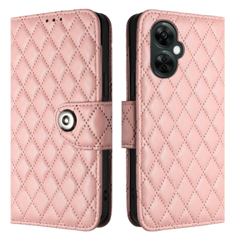 Για OnePlus CE 3 Lite 5G / Nord N30 Rhombic υφή Flip υπόθεση τηλεφώνου δέρμα με κορδόνι (Coral Pink)