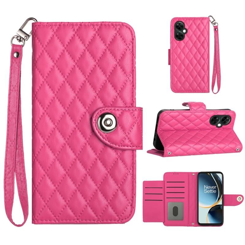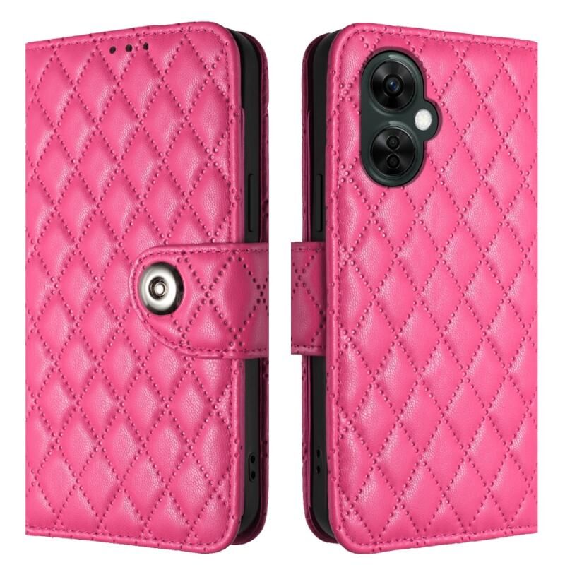 Για OnePlus CE 3 Lite 5G / Nord N30 Rhombic υφή Flip υπόθεση τηλεφώνου δέρμα με κορδόνι (Rose Red)
