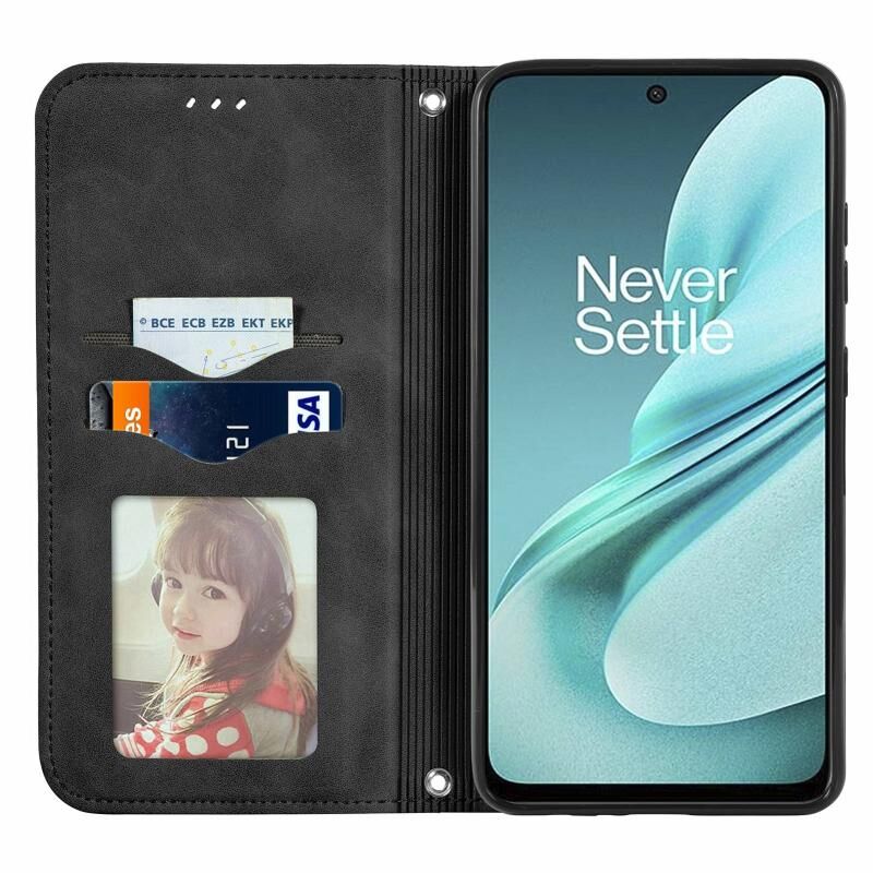 For OnePlus CE 4 Lite Retro Skin Feel Magnetic Flip Leather Phone Case(Black)