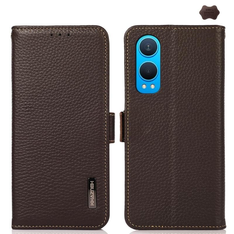 Θήκη τηλεφώνου OnePlus CE4 Lite KHAZNEH με μαγνητικό κλείσιμο, γνήσιο δέρμα Litchi, RFID (Μαύρο)