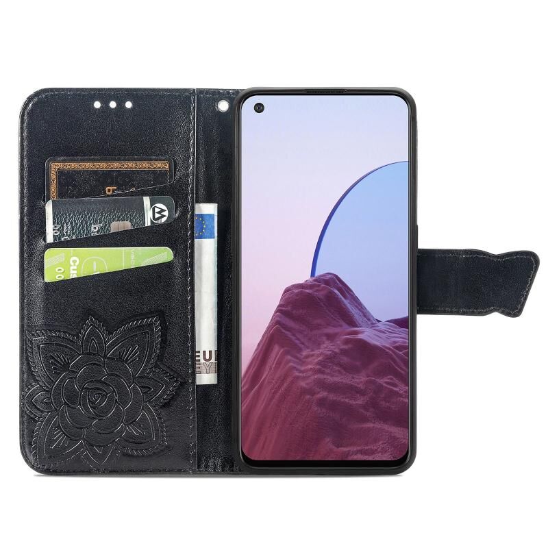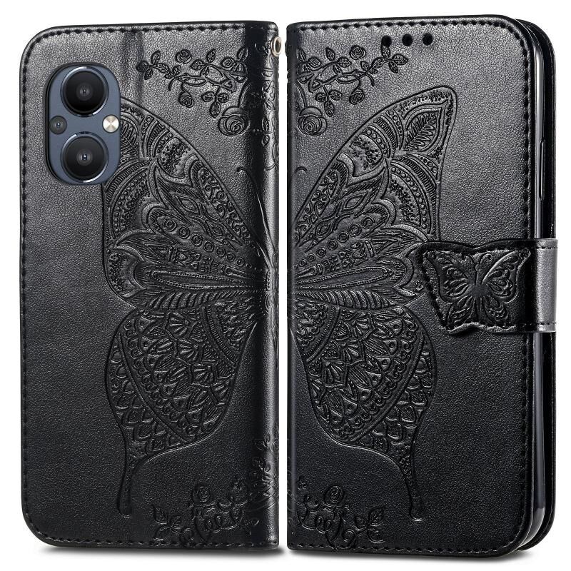 Θήκη τηλεφώνου από δέρμα με ανάγλυφο σχέδιο πεταλούδας και λουλουδιών για OnePlus N20 5G (Μαύρο)