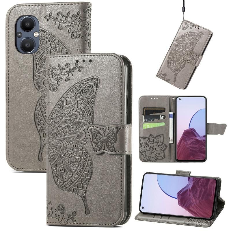 Θήκη τηλεφώνου από δέρμα με ανάγλυφο σχέδιο πεταλούδας και λουλουδιών για OnePlus N20 5G (Μαύρο)