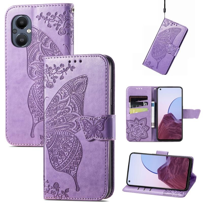 Θήκη τηλεφώνου από δέρμα με ανάγλυφο σχέδιο πεταλούδας και λουλουδιών για OnePlus N20 5G (Μαύρο)