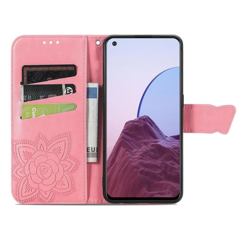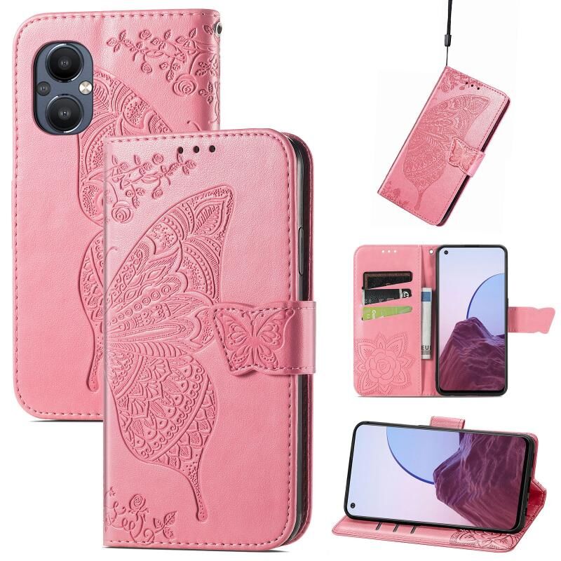 Θήκη τηλεφώνου από δέρμα με ανάγλυφο σχέδιο πεταλούδας και λουλουδιών για OnePlus N20 5G (Μαύρο)