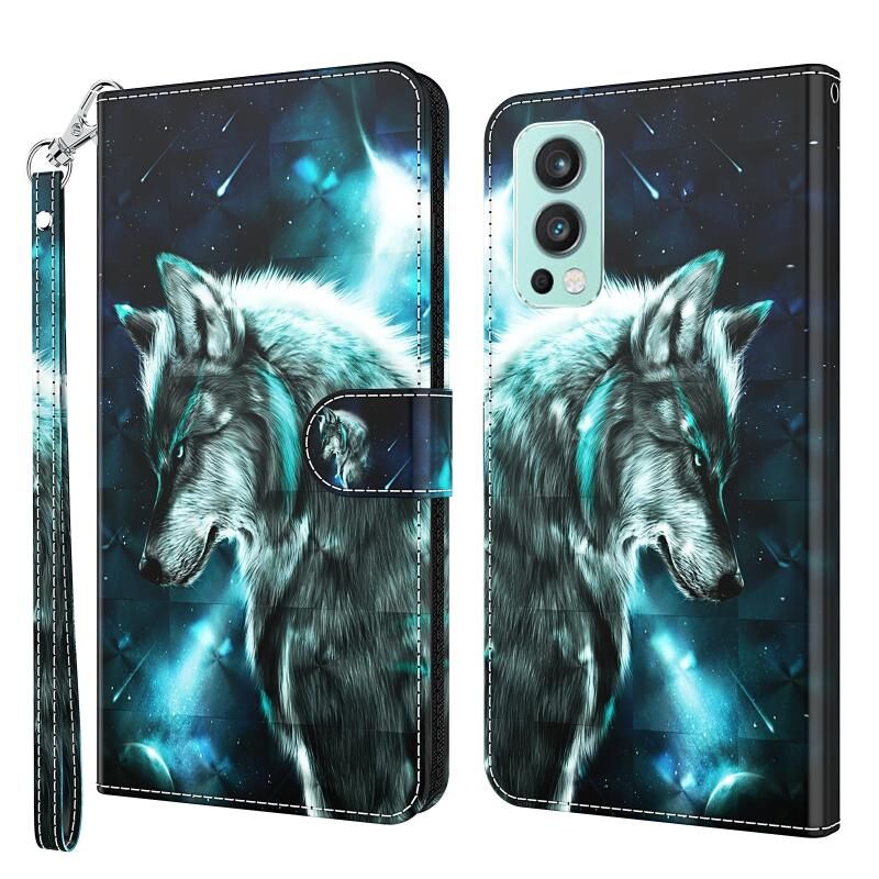 Θήκη τηλεφώνου για OnePlus Nord 2 5G, TPU + Δερμάτινη PU, με τρισδιάστατο σχέδιο (Λύκος)