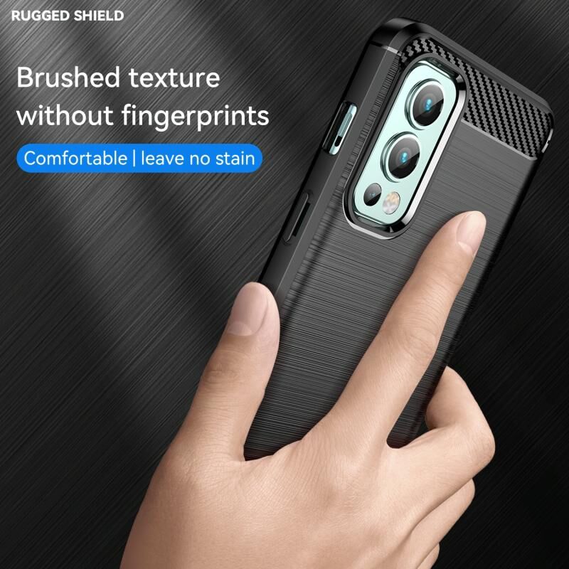 Για OnePlus Nord 2 5G βουρτσισμένη υφή Carbon Fiber TPU τηλέφωνο υπόθεση (μαύρο)