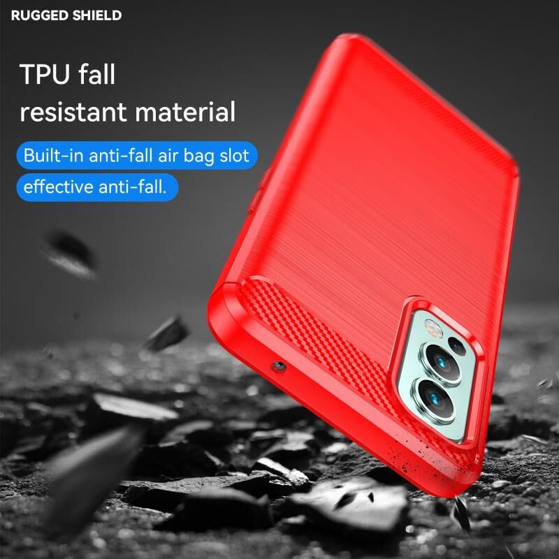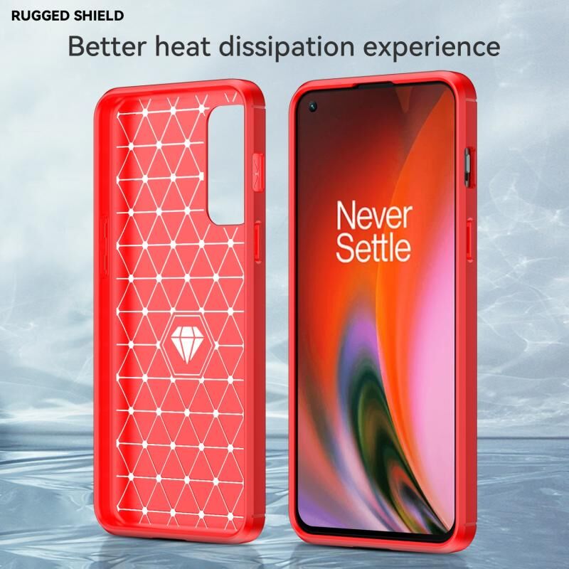 Για OnePlus Nord 2 5G βουρτσισμένη υφή Carbon Fiber TPU τηλέφωνο υπόθεση (κόκκινο)