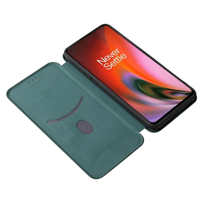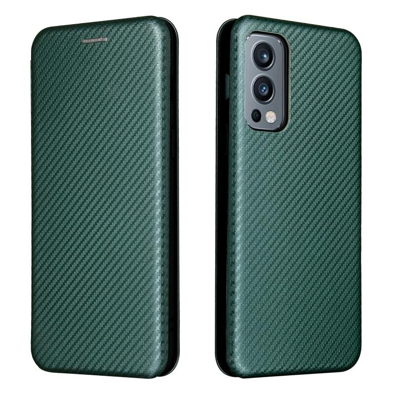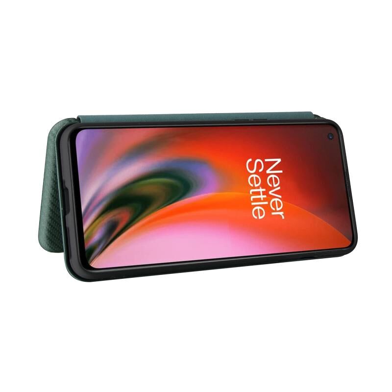 Για OnePlus Nord 2 5G Carbon Fiber υφή οριζόντια Flip TPU + PC + PU δέρμα υπόθεση με υποδοχή κάρτας (πράσινο)