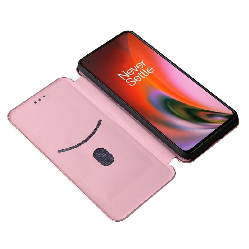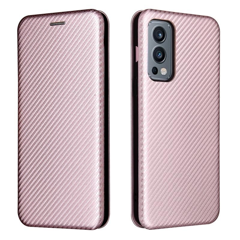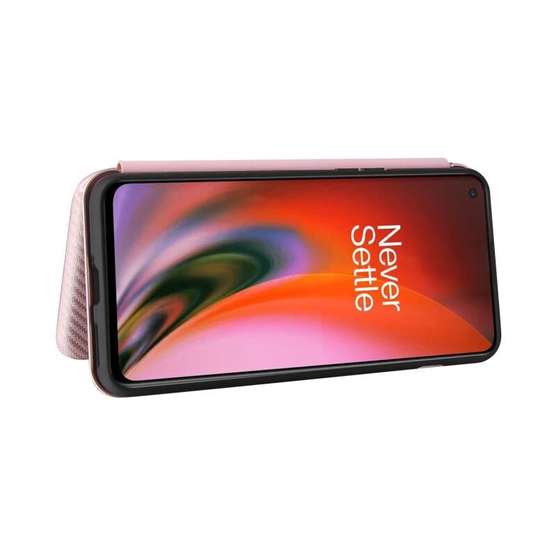 Για OnePlus Nord 2 5G Carbon Fiber υφή οριζόντια Flip TPU + PC + PU δέρμα υπόθεση με υποδοχή κάρτας (ροζ)