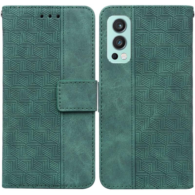 Για OnePlus Nord 2 5G γεωμετρική ανάγλυφη δερμάτινη θήκη τηλεφώνου (πράσινο)