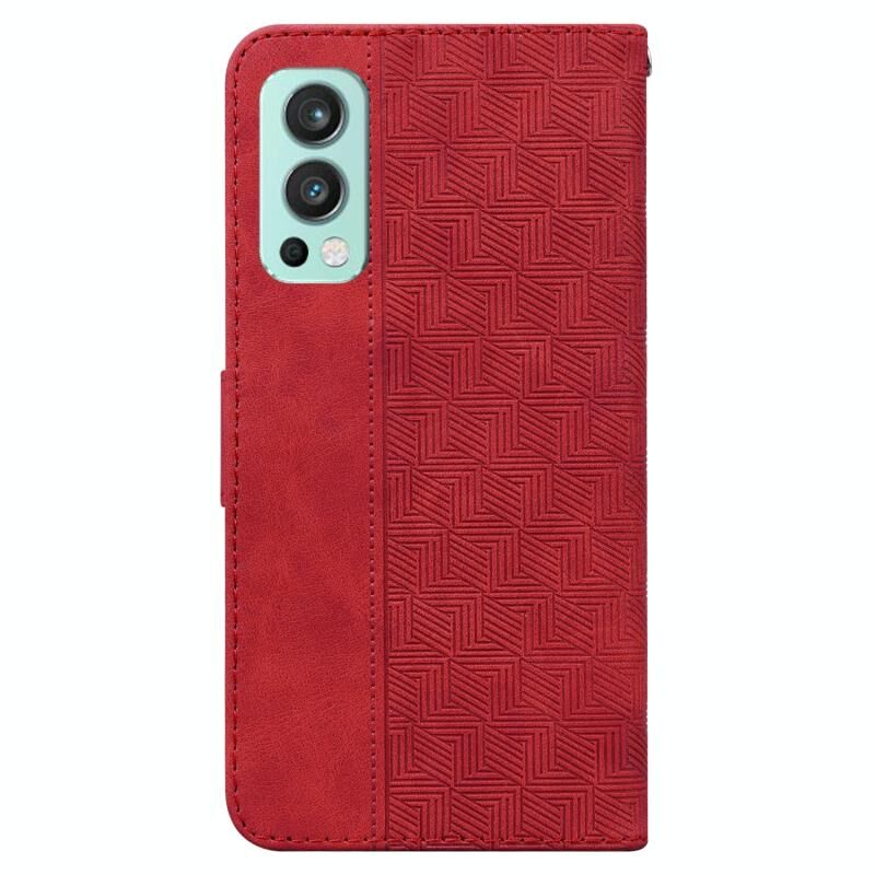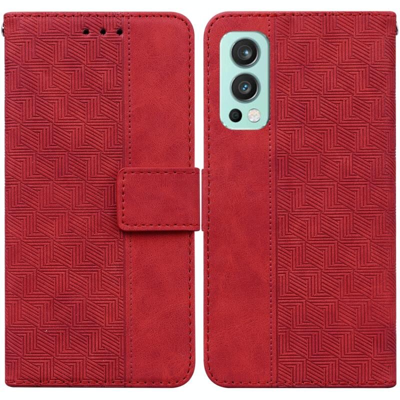 Για OnePlus Nord 2 5G γεωμετρική ανάγλυφη δερμάτινη θήκη τηλεφώνου (κόκκινο)