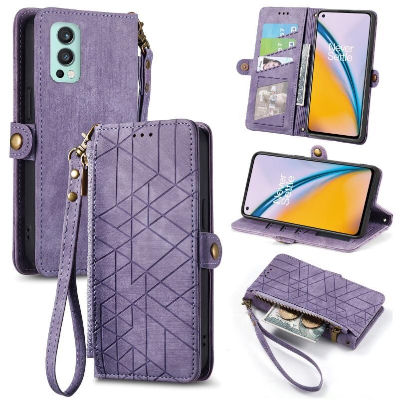 Για OnePlus Nord 2 5G γεωμετρική φερμουάρ πορτοφόλι πλευρά πόρπη δερμάτινη θήκη τηλεφώνου (μοβ)