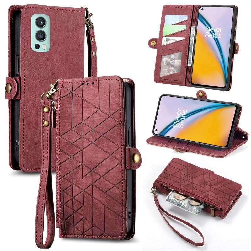 Για OnePlus Nord 2 5G γεωμετρική φερμουάρ πορτοφόλι πλευρά πόρπη δερμάτινη θήκη τηλεφώνου (κόκκινο)