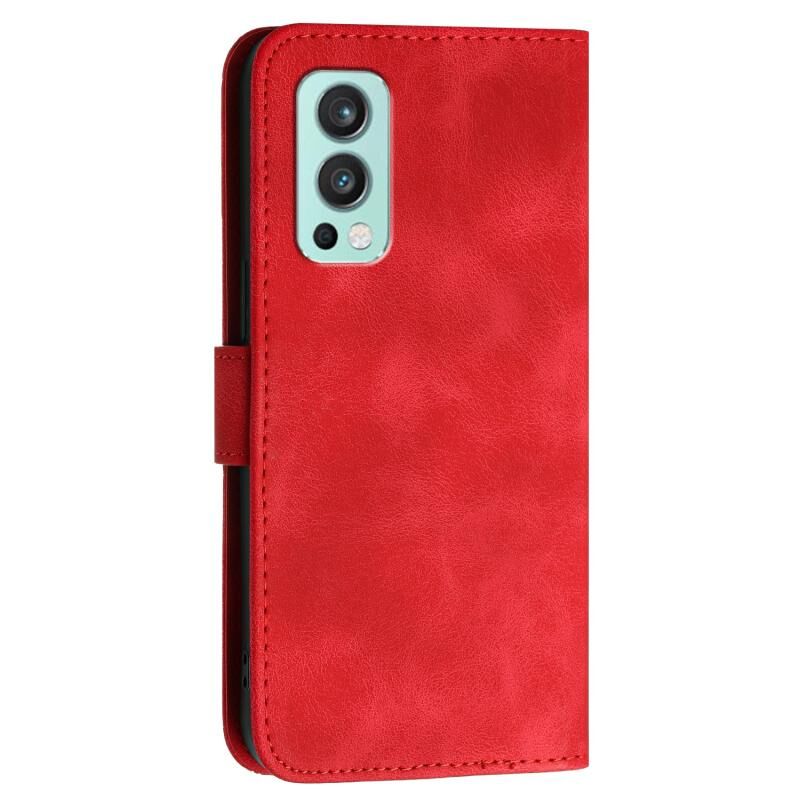 Θήκη τηλεφώνου από δέρμα με σχέδιο ανάγλυφου πλέγματος και πεταλούδας για OnePlus Nord 2 5G, με κορδόνι (ανοιχτό μωβ)